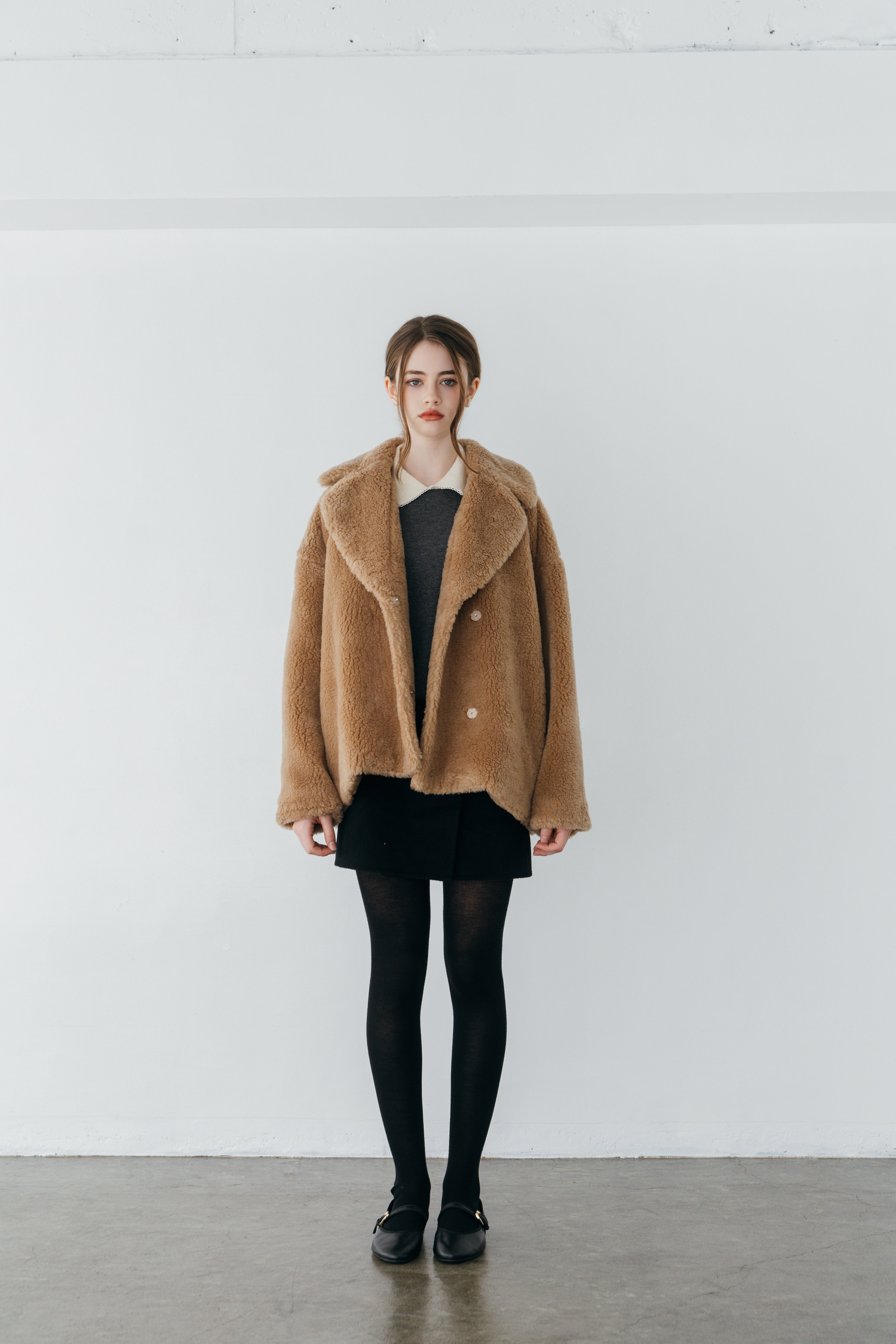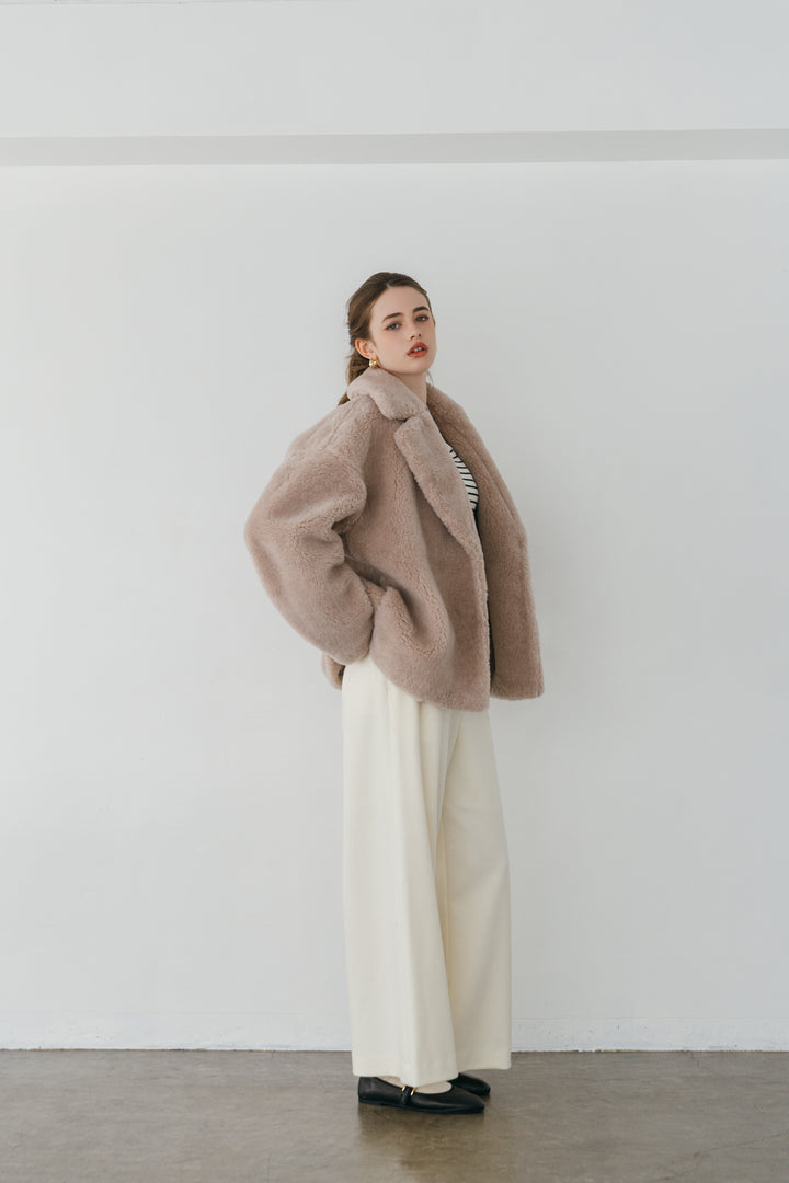希少なウール Super140s をパイル部分に贅沢に使用した、ウールボアのショートコート。