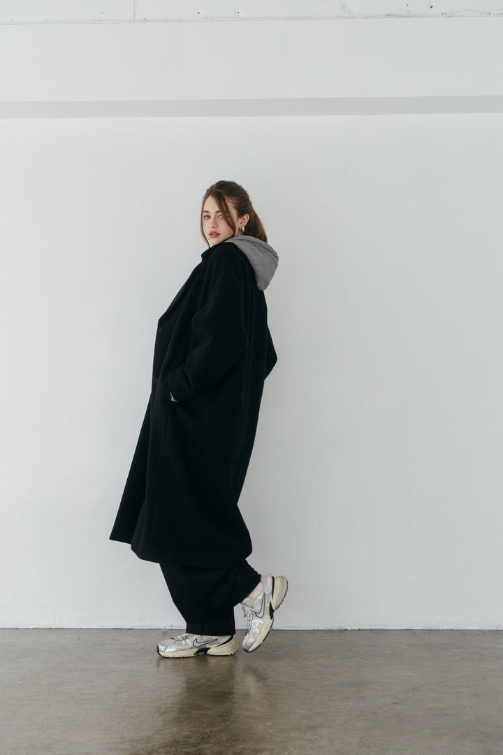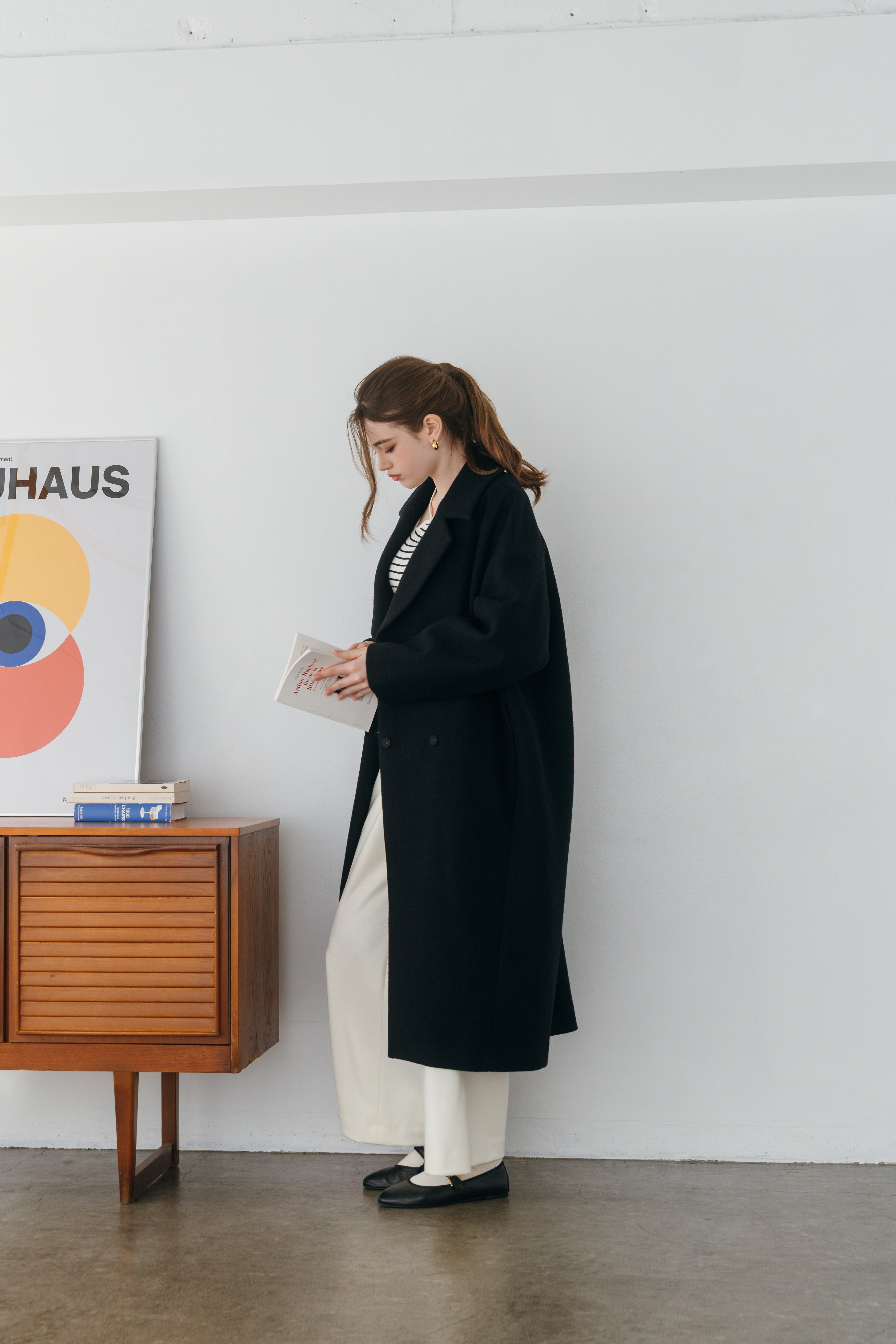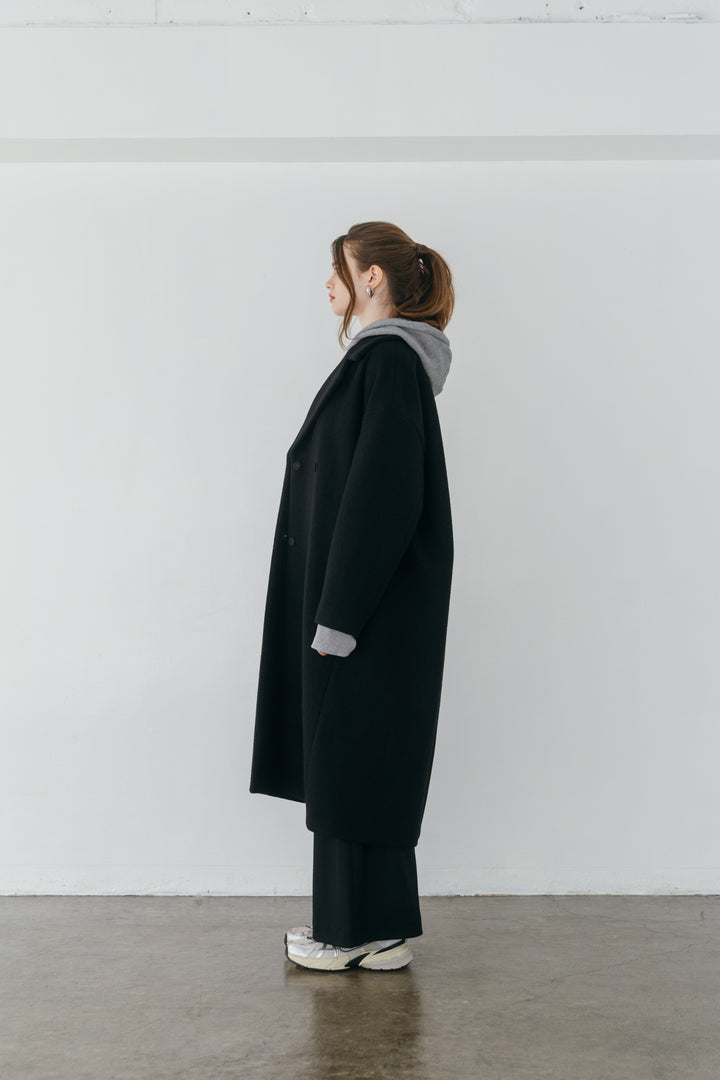 希少なウール Super140s を、尾州で丁寧に編み立てたジャージ素材で仕立てたロングコート。