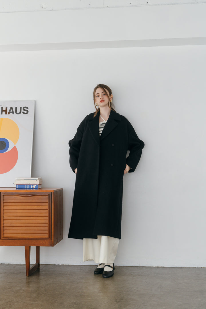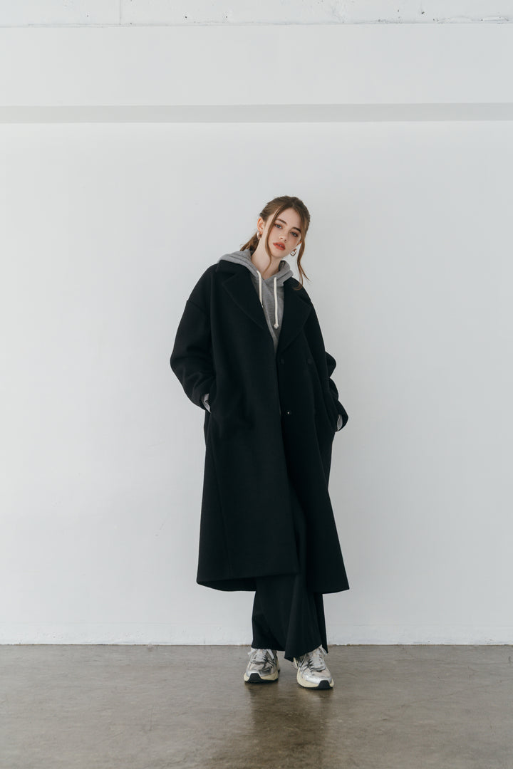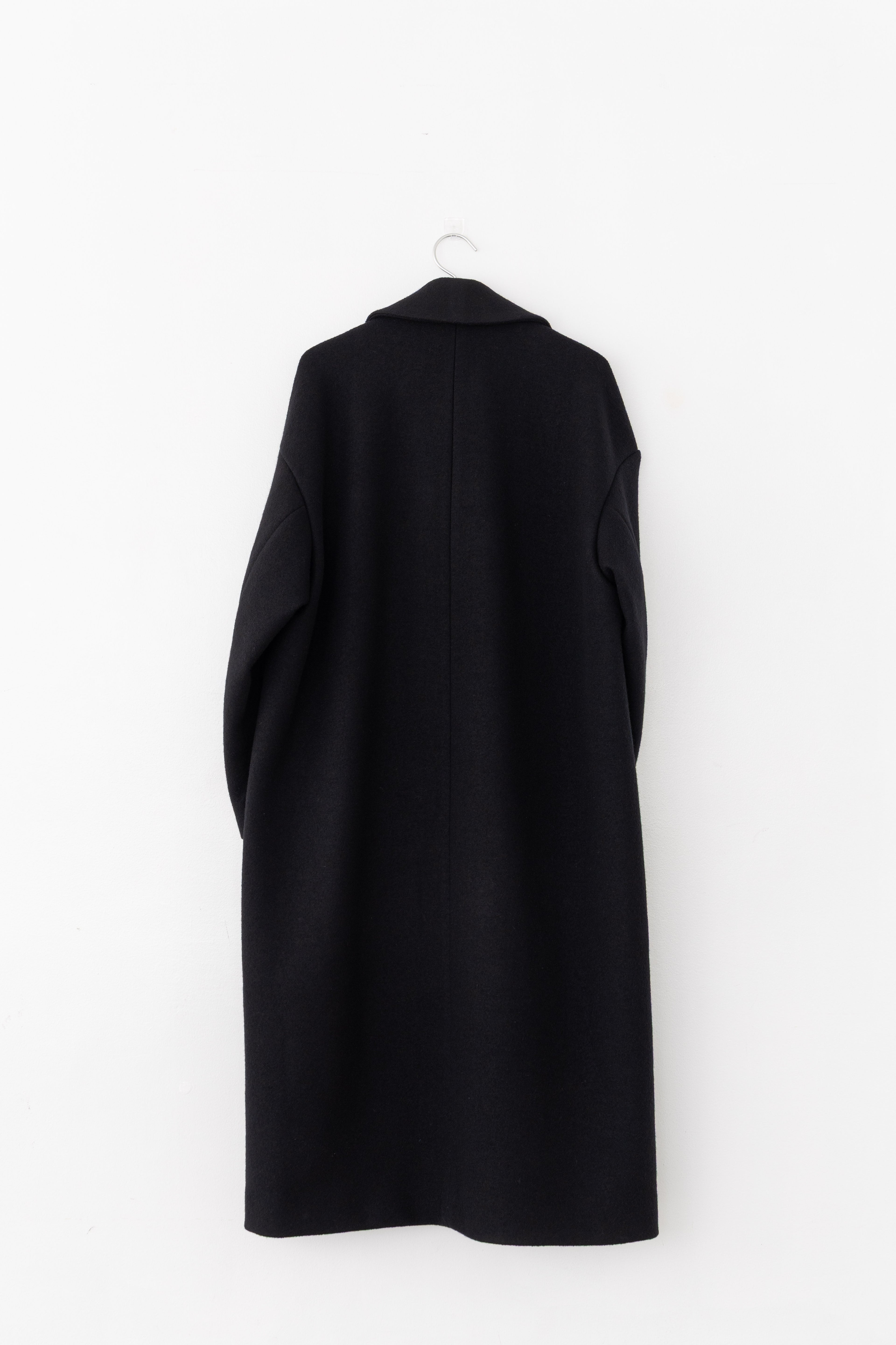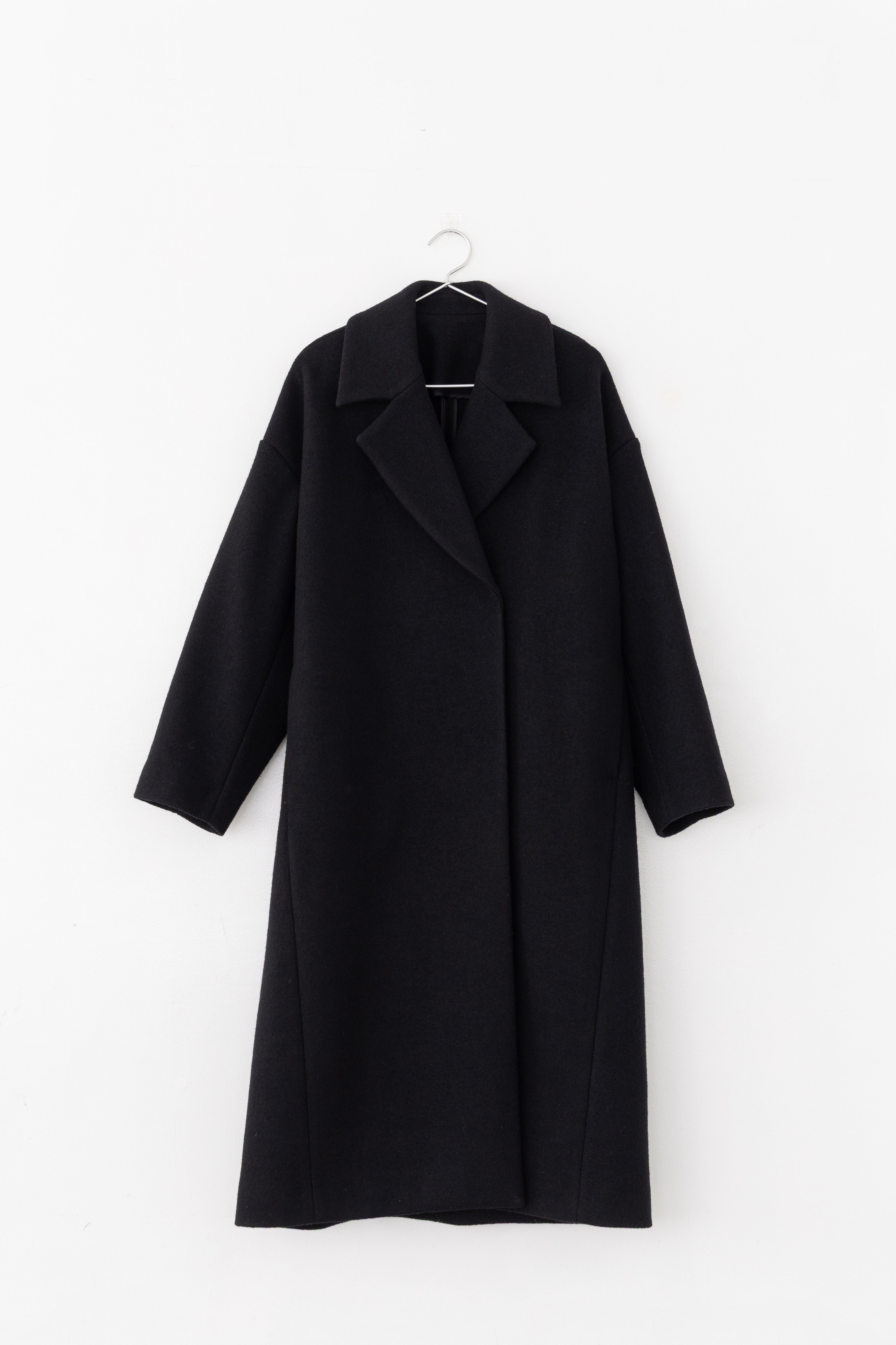 希少なウール Super140s を、尾州で丁寧に編み立てたジャージ素材で仕立てたロングコート。